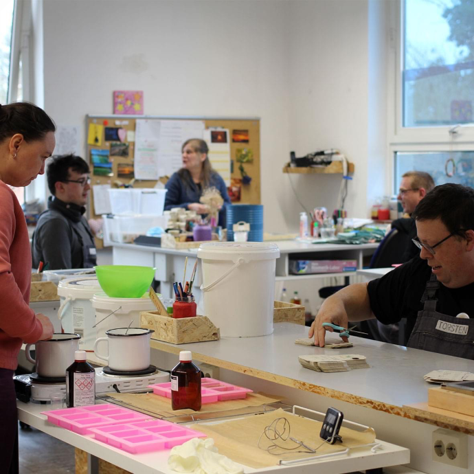 Unser wundervolles Team aus über 50 Menschen mit und ohne Beeinträchtigung fertigen in unseren Manufakturen Produkte, die kreativ und nachhaltig sind.